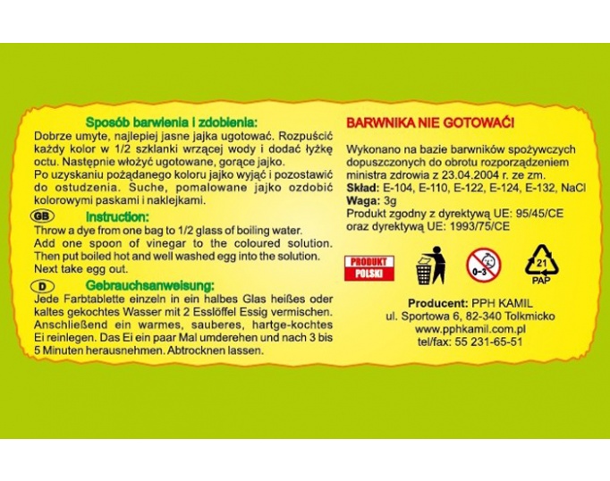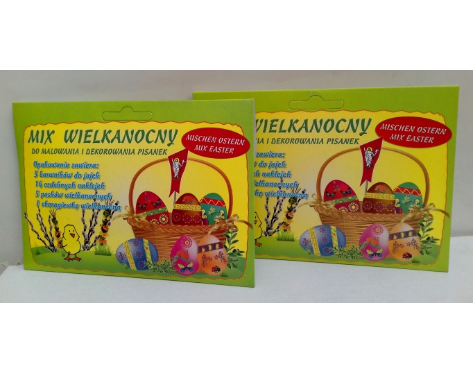 Mix Wielkanocny firmy "KAMIL" to doskonałe rozwiązanie dla ludzi którzy lubią mieć wszystko co niezbędne do przyozdobienia swoich świątecznych pisanek w jednym opakowaniu.