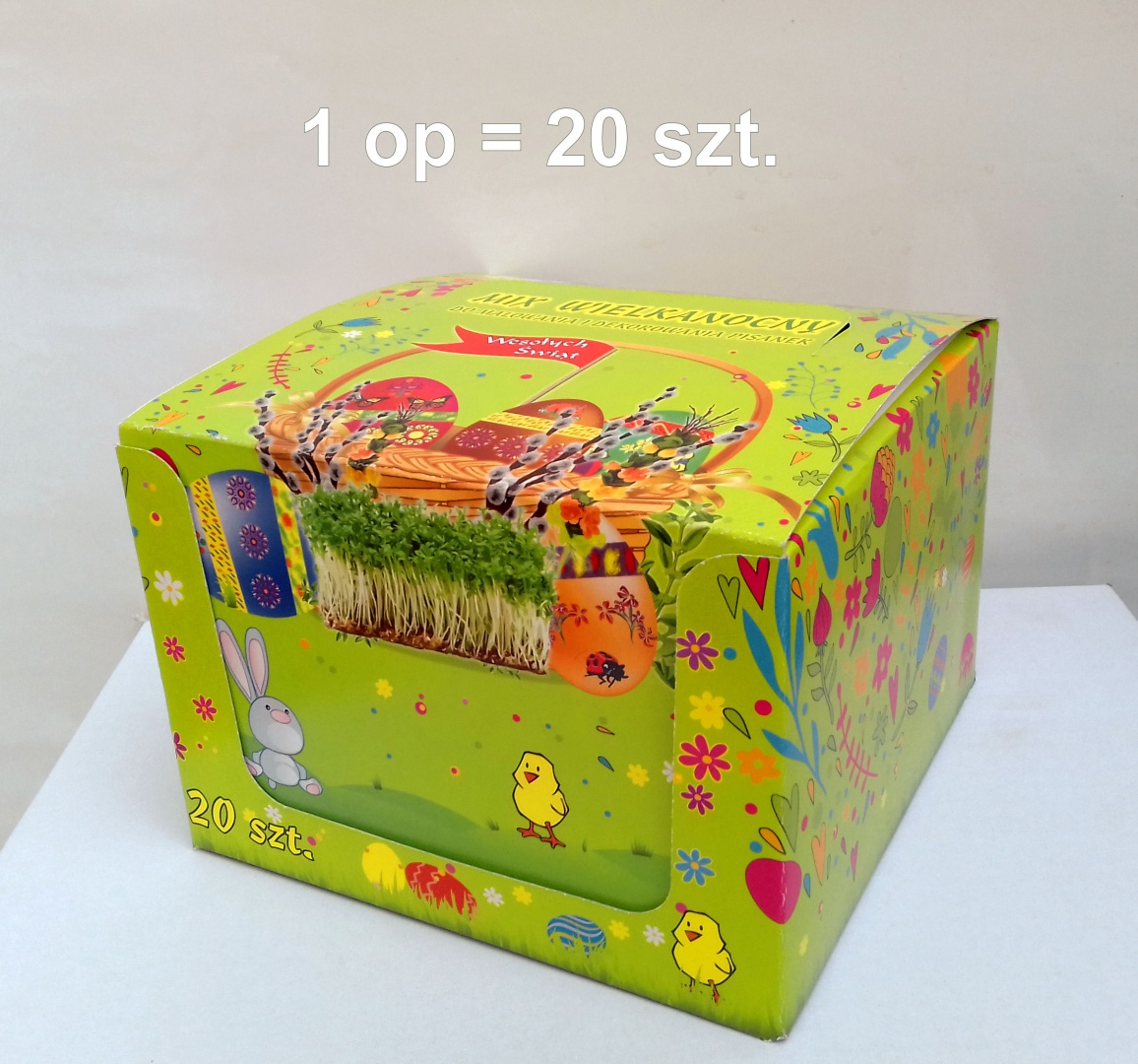 - 1 choroągiewka wielkanocna do wsadzenia, np. w wyrastającą rzeżuchę.