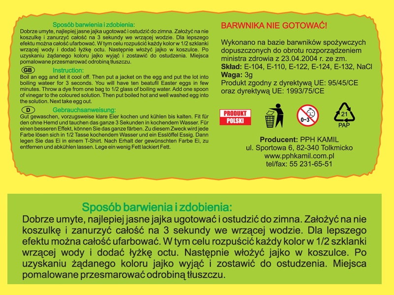 Mix Wielkanocny "2" firmy "KAMIL" to doskonałe rozwiązanie dla ludzi którzy lubią mieć wszystko co niezbędne do przyozdobienia swoich świątecznych pisanek w jednym opakowaniu.