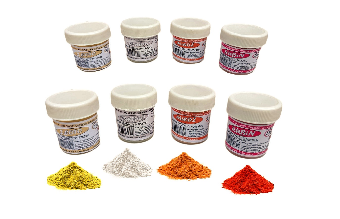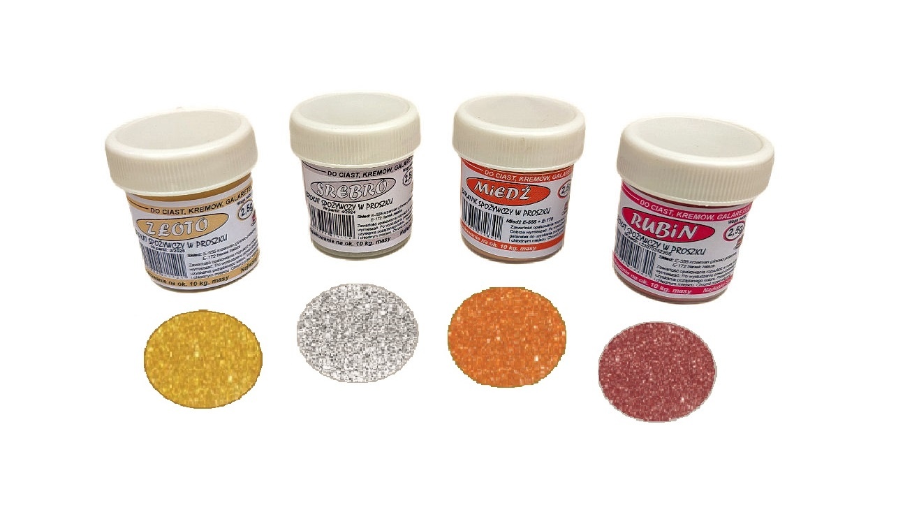 Proszek to najbardziej intensywna postać Brokatów spożywczych dzięki czemu jednocześnie są bardzo wydajne. Brokat spożywczy w proszku jest łatwy w stosowaniu, rozpuszczalny w wodzie lub alkoholu. Wystarczy nanieść na powierzchnię barwioną za pomocą pędzelka, rozpylać "pstrykając" w pędzelek z Brokatem lub delikatnie dmuchając w Brokat umieszczony na czubku noża. Z Brokatu bardzo łatwo uzyskać farbkę poprzez dodanie Brokatu do wody z spirytusem lub przezroczystego lukru.