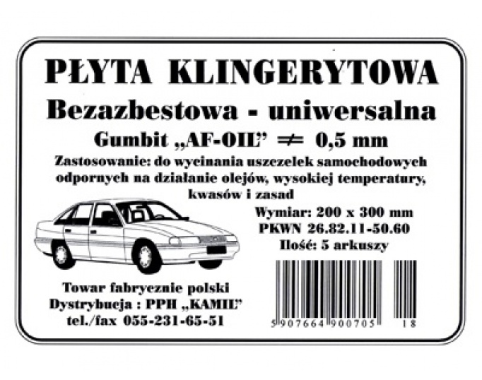 Płyta klingierytowa - odporna na olej, chemikalia o odporności temperaturowej do 350 C i ciśnienia 10 Mpa.
