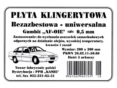 Płyta klingierytowa - odporna na olej, chemikalia o odporności temperaturowej do 350 C i ciśnienia 10 Mpa.
