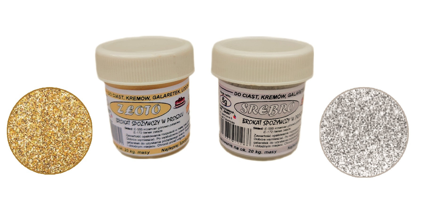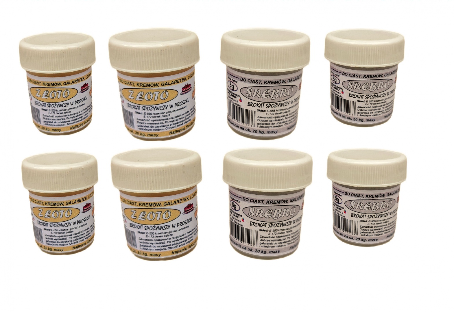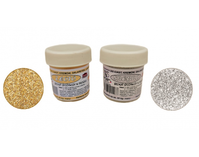 Brokat spożywczy jest substancją do dekorowania wyrobów spożywczych. Idealnie nadają się do zdobienia: kremów, ciast, lodów, śmietan, napoi, polew, galaretek i wielu innych. Brokaty są stosowane głównie w przemyśle cukierniczym do dekorowania ciast oraz mas cukrowych. Z ich pomocą udekorowanie własnej niepowtarzalnej kompozycji nie będzie stanowiło już problemu.