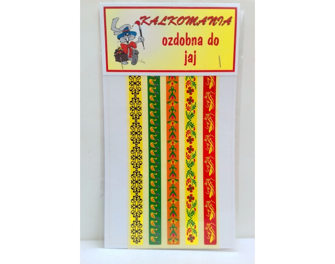 Kalkomania paski to nic innego jak druk na specjalnym papierze, którego obraz jest przeznaczony do przeniesienia później na inną powierzchnię - w tym przypadku na powierzchnię jajka.