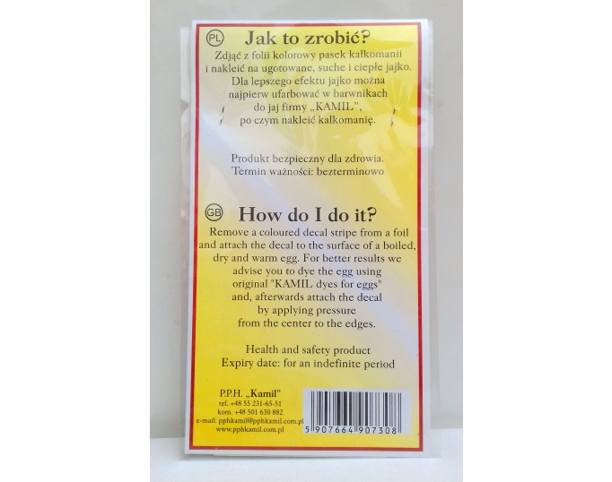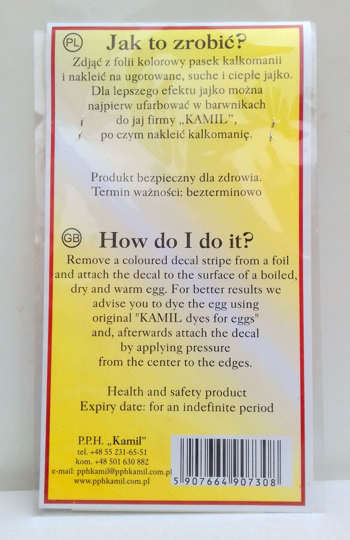 PPH "Kamil" jest dystrybutorem wielu wzorów kalkomanii do jaj wielkanocnych. Wykorzystując nasze kalkomanie stworzą państwo wspaniałe pisanki wielkanocne.